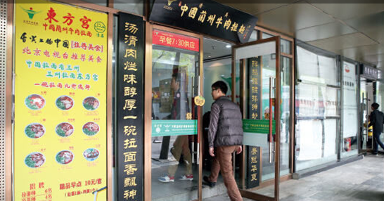 過去的一年多時間里,梁建突然發(fā)現(xiàn)北京城的大街小巷里多了很多黃底藍(lán)字的招牌“東方宮中國蘭州牛肉拉面”,對此梁建的評價是“老實(shí)說很接近或者已經(jīng)達(dá)到了在蘭州本地吃面的口味”。