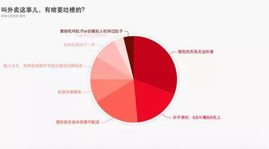 「好奇心研究所」此前做過(guò)一次“叫外賣這事兒,有啥要吐槽的?”的投票,我們收獲了共 1871 次表態(tài),結(jié)果表明:對(duì)外賣實(shí)際口味的投訴遠(yuǎn)遠(yuǎn)少于對(duì)幻想中的外賣的憧憬——30.7% 的投票是在抱怨想吃的東西無(wú)法外賣;17.7% 在抱怨所在區(qū)域內(nèi)可選外賣太少,想吃的東西都不在配送范圍內(nèi)。