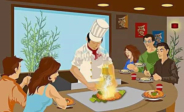 餐廳娛樂(lè)化這很常見(jiàn),如吃飯有人彈奏音樂(lè),堂食有鮑魚公主服務(wù)之類的。但是讓廚師在顧客面前表演烹飪,并且快速提高翻臺(tái)率的方法,你知道嗎?