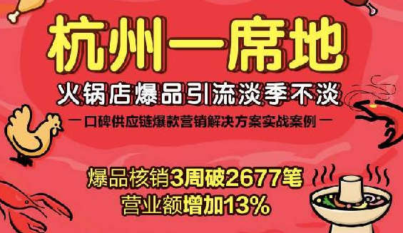 “夏季是火鍋淡季,我們也一直想要開發(fā)應(yīng)季爆品,但又面臨著研發(fā)能力有限、供應(yīng)鏈短板、新品營銷等等難題,并沒有十足的把握�!焙贾荼镜仉u窩火鍋 “一席地”的管理人杜帥帥笑言,“沒想到,今年通過與‘口碑貨源市場’合作,火鍋店的業(yè)績竟然實現(xiàn)了逆勢增長!”